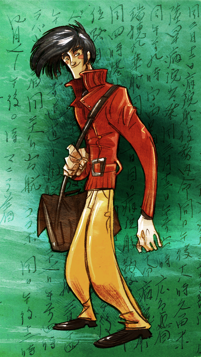 Recuperando personajes. Coger un viejo dibujo, una antigua ilustración y continuar trabajando en ella o en sus personajes años después. Este joven profesor, con su cartera a cuestas, apareció en la portada de las publicaciones de «Paraules al Vent» en el año 2013…
