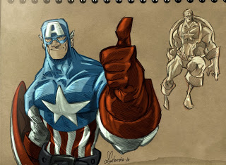 En otro orden de cosas, este capitán américa está genial! Es uno de mis superheroes favoritos (siempre, por supuesto detrás del gran Daredevil), y tu versión le hace justicia.