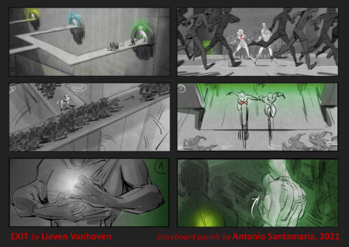 Back in 2021, I had the luck to work with Lieven Vanhoven on his short film “EXIT”, which has just been released. It’s a film made entirely in Unreal, and we could label it as surreal, terrifying, and even near to sci-fi. My panels were an early approximation of what has ultimately turned out to be a magnificent and disturbing film. Now it is beginning its journey through festivals and is open to being presented anywhere in the world (in case anyone is interested in it being part of one, please let me know…).