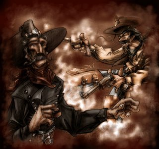 Tienes un estilo muy personal; muy dinámico. El pistolero que dispara es la ostia… me gustaría ver más cosas de este tipo. Iré visitándote. No dejes de postear. Gracias